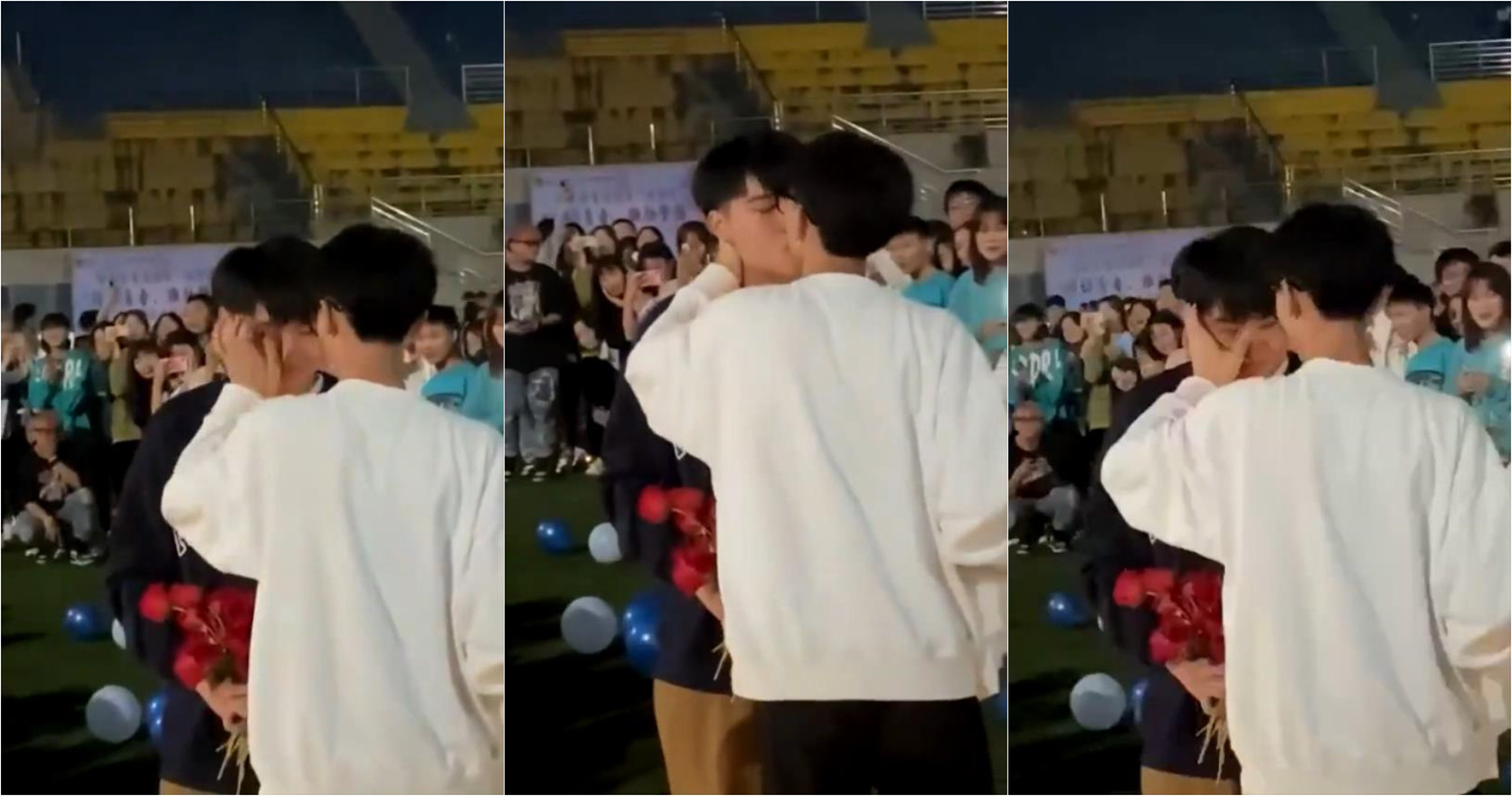 某大学操场,两男生表白现场